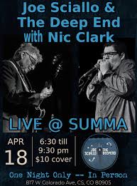 Joe Sciallo The Deep End with Nic Clark @ Summa, 817 W Colorado Ave (80905) on Saturday, April 18th from 6:30 pm to 9:30 pm.